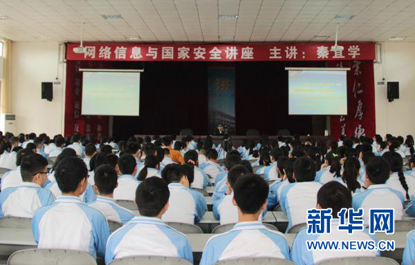 ????隨著互聯(lián)網(wǎng)的快速發(fā)展,網(wǎng)絡(luò)信息安全已成為關(guān)系國(guó)家安全的重大問(wèn)題,受到全社會(huì)越來(lái)越多的關(guān)注和重視。全國(guó)首批“國(guó)家安全教育示范基地”四川省邛崍第一中學(xué)4月26日舉行國(guó)家安全教育講座的第三講《網(wǎng)絡(luò)信息與國(guó)家安全》。國(guó)防科學(xué)技術(shù)大學(xué)秦宜學(xué)教授為該校高一年級(jí)全體學(xué)生、老師講解有關(guān)網(wǎng)絡(luò)信息安全知識(shí)。