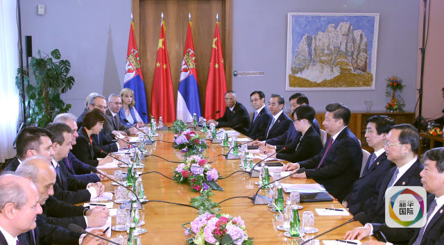 6月18日,國家主席習近平在貝爾格萊德同塞爾維亞總統(tǒng)尼科利奇舉行會談。新華社記者馬占成攝
