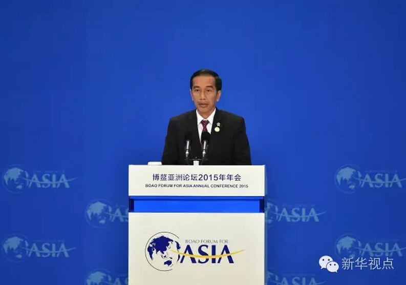 ??? 印尼的獨(dú)特之處在于,它是G20中唯一的東南亞成員,參與了歷次G20峰會(huì)。中國(guó)和印尼在加強(qiáng)和改進(jìn)國(guó)際經(jīng)濟(jì)治理方面,擁有相近立場(chǎng)和廣泛共同利益。 出席博鰲亞洲論壇2015年年會(huì)的佐科總統(tǒng)↓