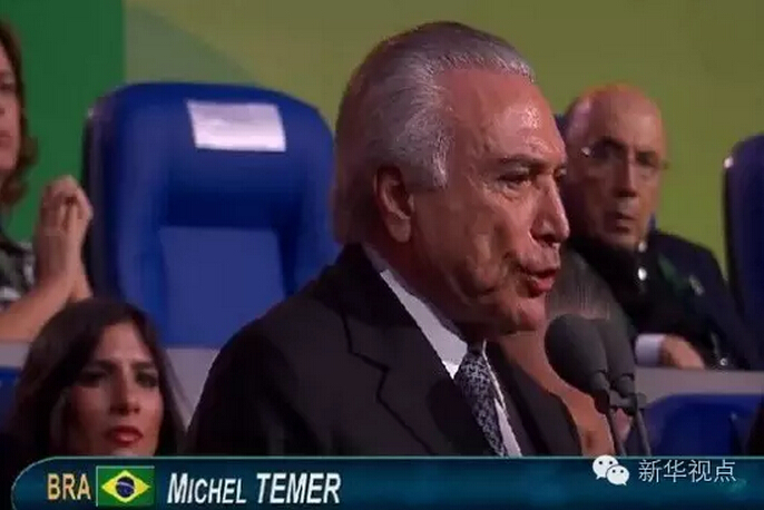 ??? 值得一提的是,出席杭州峰會(huì)的特梅爾,奧運(yùn)會(huì)時(shí)的身份還是代總統(tǒng),當(dāng)?shù)貢r(shí)間8月31日,特梅爾正式就任巴西總統(tǒng),杭州峰會(huì)成為他就職后出席的首個(gè)國(guó)際會(huì)議。 里約奧運(yùn)會(huì)開幕式上的特梅爾↓