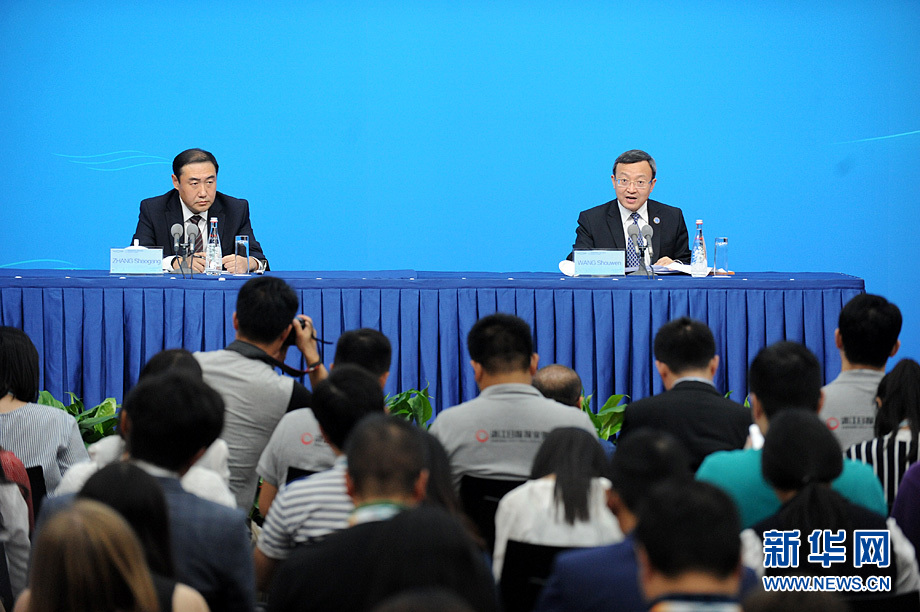 9月3日,中國代表團(tuán)在浙江杭州舉行新聞發(fā)布會,商務(wù)部副部長王受文就G20杭州峰會經(jīng)貿(mào)成果展望向記者介紹情況并回答提問。新華網(wǎng)記者?陳競超 攝