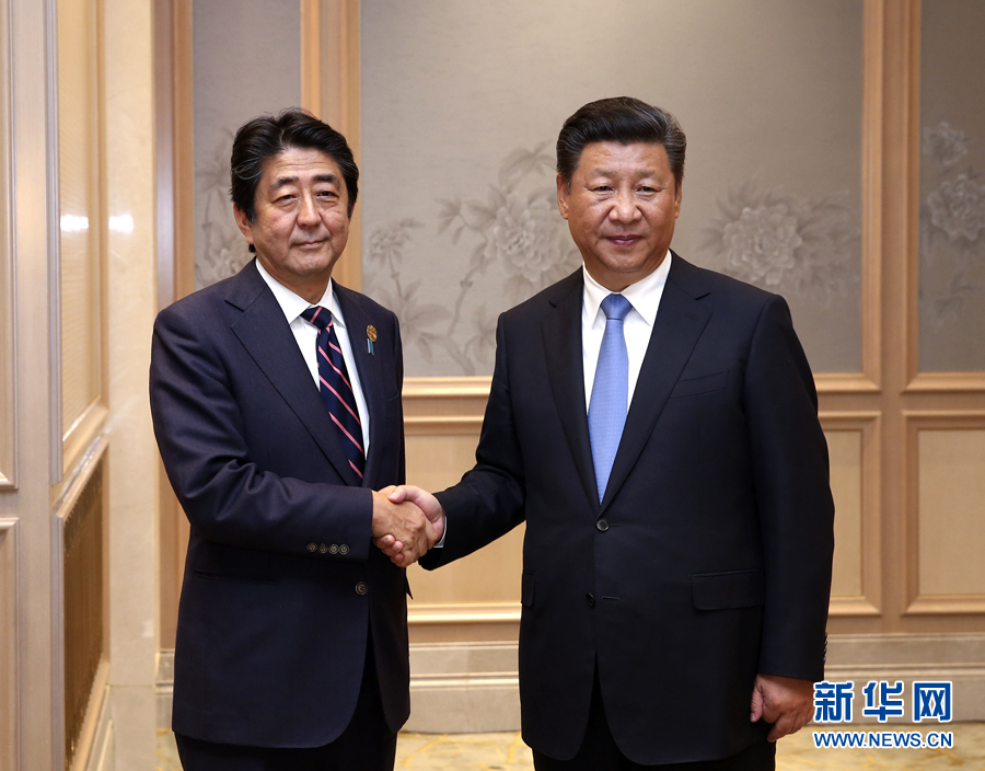 9月5日,國(guó)家主席習(xí)近平在杭州會(huì)見來華出席二十國(guó)集團(tuán)領(lǐng)導(dǎo)人峰會(huì)的日本首相安倍晉三。 新華社記者龐興雷攝