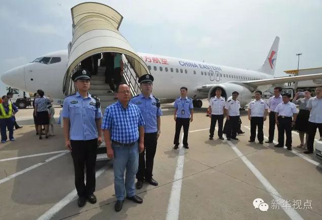 2016年7月13日,在武漢天河機場,“百名紅通人員”朱海平從美國回國投案自首。標志著“百名紅通人員”已有三分之一落網(wǎng)。新華社發(fā)(楊平攝)