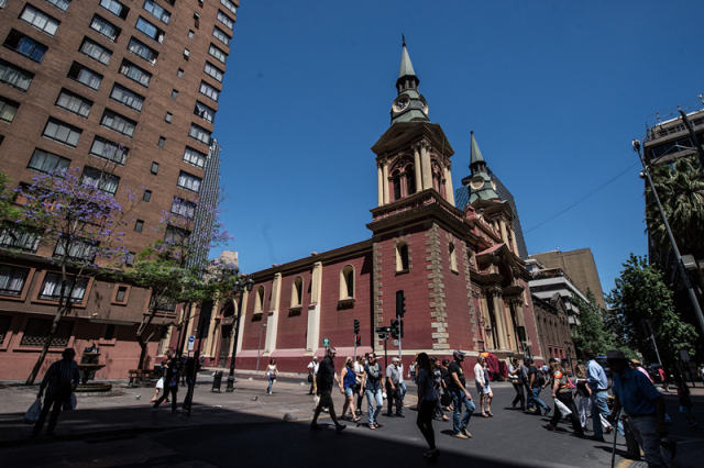 圖為11月17日在智利首都圣地亞哥拍攝的梅塞德教堂。(新華社發(fā) 豪爾赫·比列加斯攝)