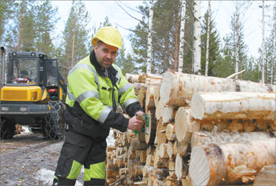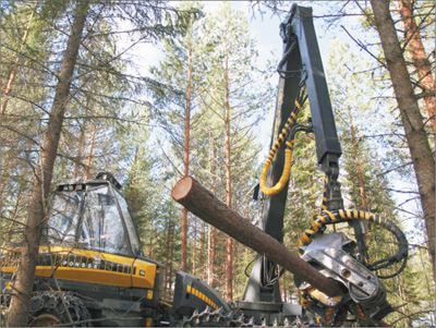 從芬蘭首都赫爾辛基驅(qū)車往北一個(gè)多小時(shí),我們的四輪驅(qū)動(dòng)汽車駛上一條小路。路上積雪越來越多,兩旁的森林也越來越密。循著轟鳴聲,我們看到一臺(tái)伐木機(jī)正在作業(yè):一只碩大的機(jī)械手攥住云杉的底部,量直徑、切樹樁、去雜枝、測(cè)長(zhǎng)度、斷木頭,幾秒鐘的工夫,一氣呵成。