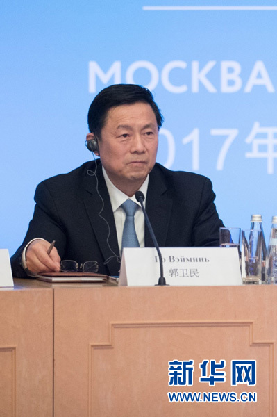 7月4日,國務(wù)院新聞辦副主任郭衛(wèi)民在第三屆中俄媒體論壇上聆聽報(bào)告。新華社記者 吳壯 攝
