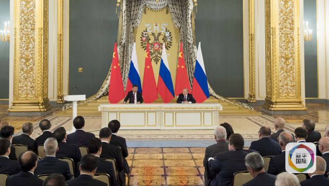 7月4日,國家主席習(xí)近平在莫斯科克里姆林宮同俄羅斯總統(tǒng)普京舉行會談。會談后,兩國元首簽署了《中華人民共和國和俄羅斯聯(lián)邦關(guān)于進(jìn)一步深化全面戰(zhàn)略協(xié)作伙伴關(guān)系的聯(lián)合聲明》《中華人民共和國和俄羅斯聯(lián)邦關(guān)于當(dāng)前世界形勢和重大國際問題的聯(lián)合聲明》,批準(zhǔn)了《〈中華人民共和國和俄羅斯聯(lián)邦睦鄰友好合作條約〉實(shí)施綱要(2017年至2020年)》并見證了《中華人民共和國外交部和俄羅斯聯(lián)邦外交部關(guān)于朝鮮半島問題的聯(lián)合聲明》以及經(jīng)貿(mào)、農(nóng)業(yè)、能源、基礎(chǔ)設(shè)施建設(shè)、金融、文化、創(chuàng)新、媒體、信息網(wǎng)絡(luò)、檢驗(yàn)檢疫等領(lǐng)域多項(xiàng)雙邊合作文件的交換。(新華社記者饒愛民攝)