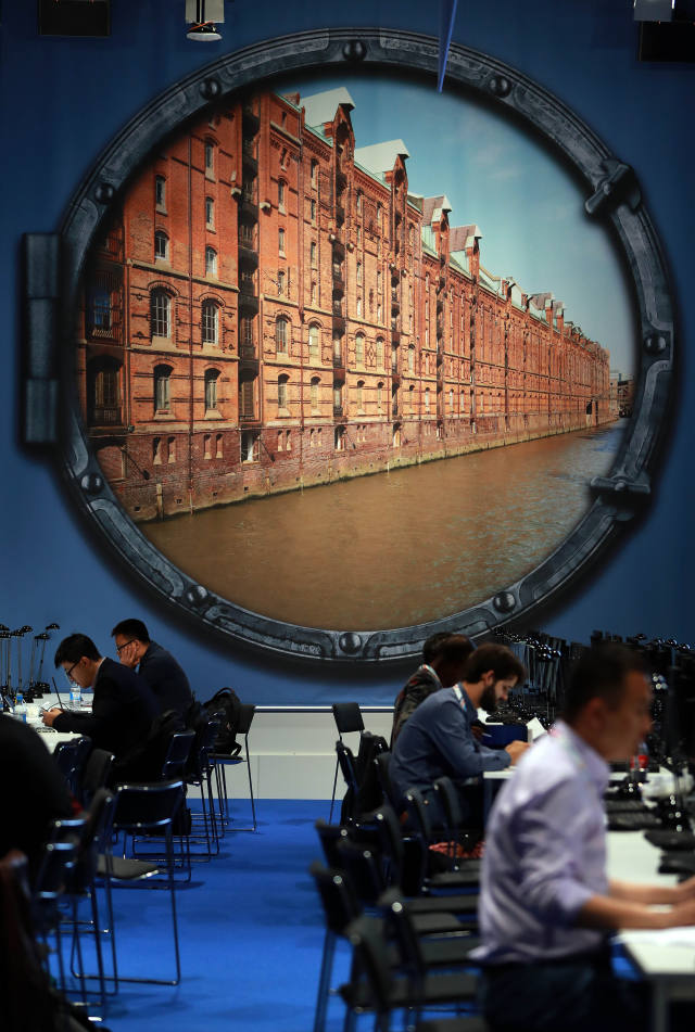↑這是7月6日在德國漢堡拍攝的G20領(lǐng)導(dǎo)人峰會(huì)國際新聞中心一景。新華社記者羅歡歡攝