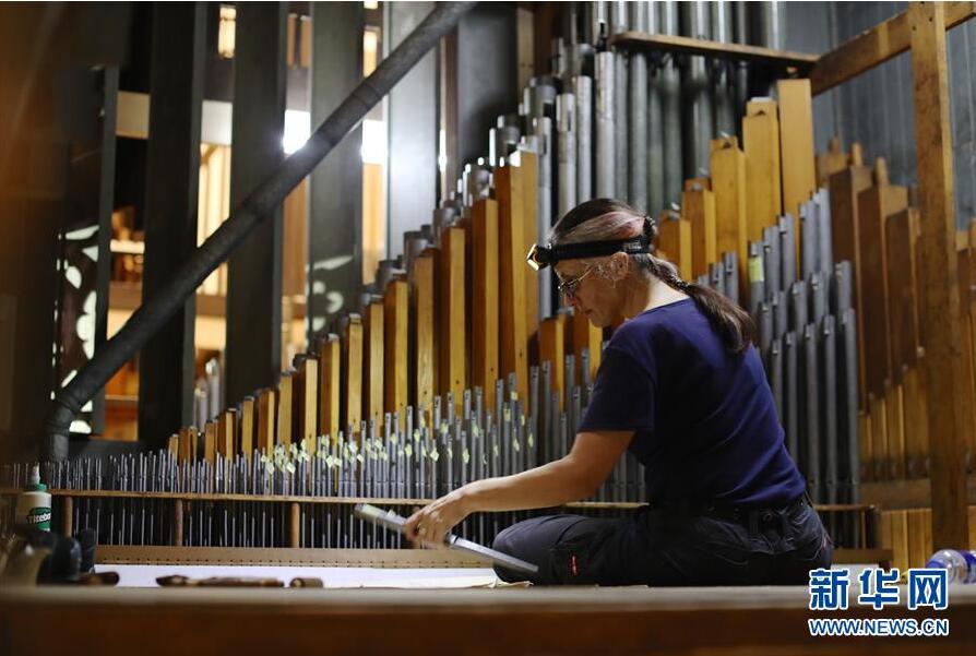 澳大利亞管風(fēng)琴修理師凱特·芭特利在安插管風(fēng)琴卡薩翁的音管(10月23日攝)。新華社記者 姜克紅攝
