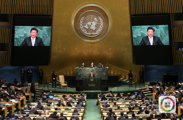 2015年9月26日至28日,習(xí)近平主席在紐約出席聯(lián)合國成立70周年系列峰會。