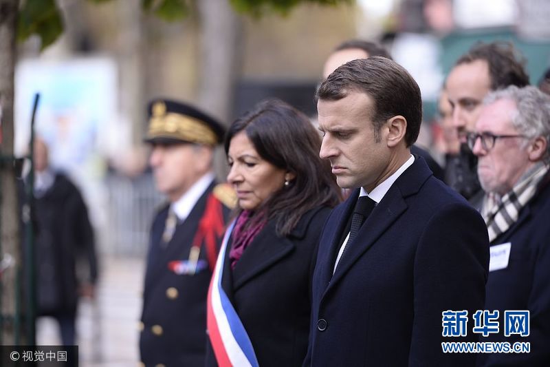 當(dāng)?shù)貢r(shí)間2017年11月13日,法國(guó)巴黎,法國(guó)恐襲2周年,法國(guó)舉行紀(jì)念儀式紀(jì)念遇難者。法國(guó)總統(tǒng)馬克龍偕夫人布麗吉特及前總統(tǒng)奧朗德等人出席紀(jì)念儀式。(圖片來(lái)源:視覺中國(guó))