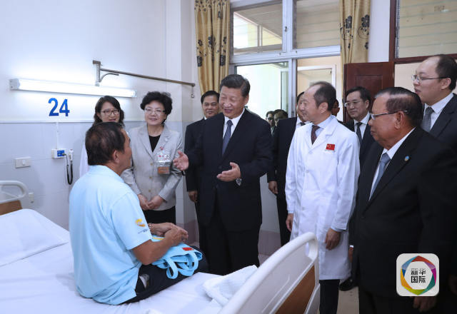 在萬象,習(xí)近平同老撾人民革命黨中央委員會總書記、國家主席本揚一道出席中國為老撾援建的民生領(lǐng)域標(biāo)志性項目瑪霍索綜合醫(yī)院奠基儀式。