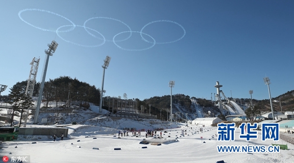 平昌冬奧會倒計時50天 韓黑鷹飛行隊在空中“畫”出奧運五環(huán)(圖)