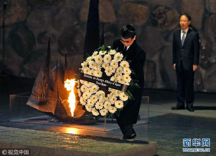 日本外相訪問耶路撒冷 在大屠殺紀念館鞠躬悼念死難者