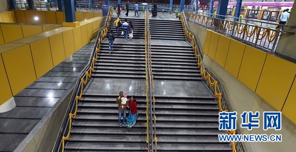 12月25日,在印度首都新德里洋紅色地鐵線,人們站在站臺臺階上駐足留影。當(dāng)日,連接新德里及其衛(wèi)星城諾伊達(dá)(Noida)之間的洋紅色地鐵線建成通車。這條線路全長12.64公里。德里地鐵公司計(jì)劃未來提高這條地鐵線路自動(dòng)化水平,以“無人值守模式”運(yùn)行。目前,新德里運(yùn)營地鐵線路共有7條,分別用顏色命名,包括紅色、黃色、藍(lán)色、綠色、橙色、紫羅蘭和洋紅色。新華網(wǎng)發(fā) (張迺杰 攝)