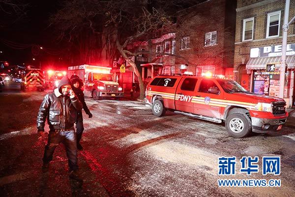 12月29日凌晨,人們從美國紐約布朗克斯區(qū)發(fā)生火災(zāi)的樓房附近經(jīng)過。新華社記者 王迎 攝