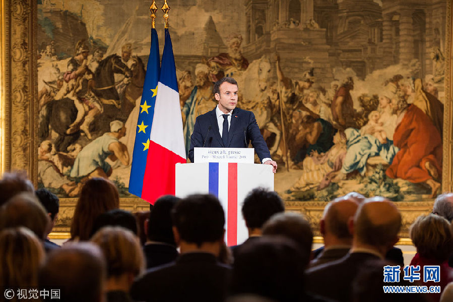 法國(guó)總統(tǒng)馬克龍向記者團(tuán)送上新年祝福