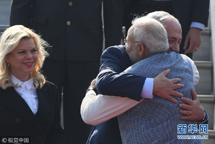 當(dāng)?shù)貢r(shí)間1月14日,印度新德里,以色列總理內(nèi)塔尼亞胡抵達(dá)印度展開訪問。(圖片來源:視覺中國)