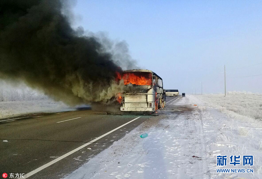1月18日,哈薩克斯坦阿克托別市(Aktobe),一輛巴士在行駛途中著火,造成至少52人喪生。報(bào)道稱只有5名人從著火的車中逃生,遇難者均為烏茲別克斯坦公民。(圖片來(lái)源:東方IC)