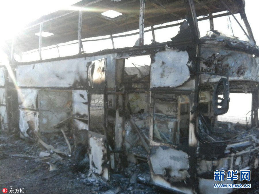 1月18日,哈薩克斯坦阿克托別市(Aktobe),一輛巴士在行駛途中著火,造成至少52人喪生。報(bào)道稱(chēng)只有5名人從著火的車(chē)中逃生,遇難者均為烏茲別克斯坦公民。(圖片來(lái)源:東方IC)