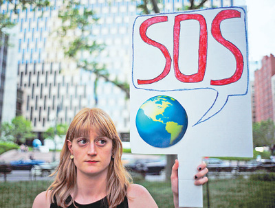 美國總統(tǒng)特朗普去年宣布美國退出應(yīng)對(duì)全球氣候變化的《巴黎協(xié)定》。圖為在美國紐約,一名女子手持標(biāo)語參加活動(dòng),抗議特朗普的決定。 新華社發(fā)