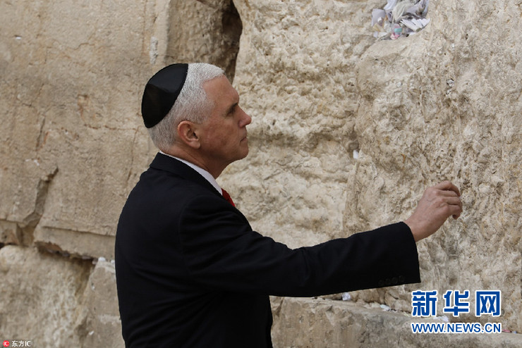 美副總統(tǒng)彭斯造訪耶路撒冷 觸摸“哭墻”禱告