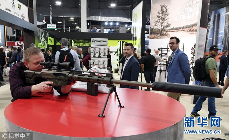 當?shù)貢r間2018年1月23日,美國拉斯維加斯,美國全國射擊運動基金會(NSSF)舉辦槍支展銷會。(圖片來源:視覺中國)