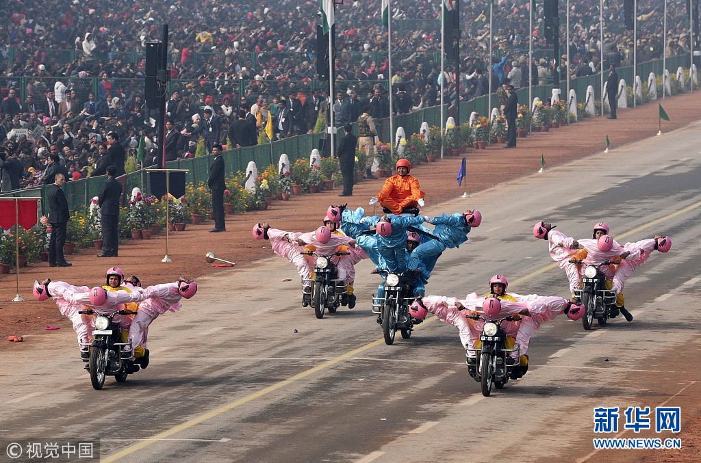 印度舉行閱兵游行慶祝第69個(gè)共和國(guó)日 摩托車(chē)隊(duì)再展“神技”