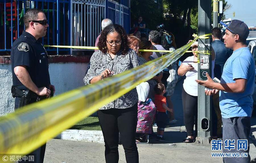 2月1日,美國洛杉磯,洛杉磯薩斯卡斯特羅(Sal Castro)中學發(fā)生槍擊案,已致2名學生送醫(yī),且傷情不明。警方表示,現(xiàn)場情況已經(jīng)得到控制,開槍的女學生已被羈押。但警方并未透露該學生的年齡和姓名。(圖片來源:視覺中國)