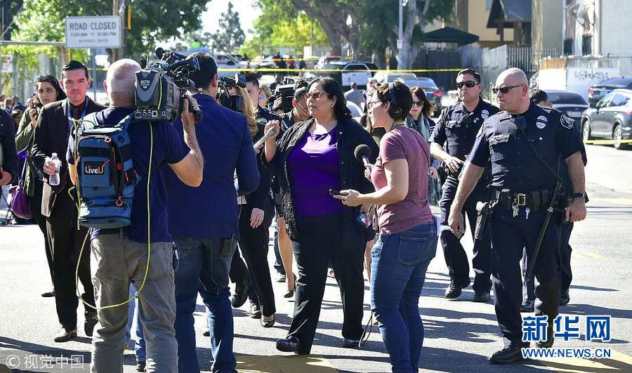 2月1日,美國(guó)洛杉磯,洛杉磯薩斯卡斯特羅(Sal Castro)中學(xué)發(fā)生槍擊案,已致2名學(xué)生送醫(yī),且傷情不明。警方表示,現(xiàn)場(chǎng)情況已經(jīng)得到控制,開槍的女學(xué)生已被羈押。但警方并未透露該學(xué)生的年齡和姓名。(圖片來(lái)源:視覺中國(guó))