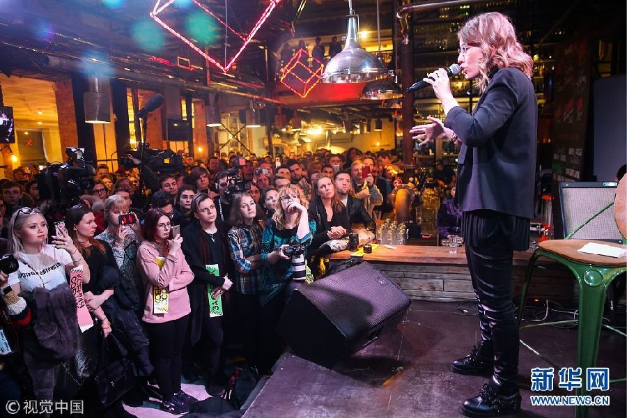 當(dāng)?shù)貢r(shí)間2月3日,俄羅斯圣彼得堡,俄羅斯電視節(jié)目主持人、總統(tǒng)候選人克謝尼婭·索布恰克會(huì)見支持者。(圖片來源:視覺中國)