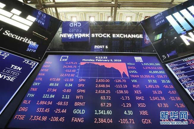 這是2月5日在美國紐約證券交易所拍攝的電子顯示屏。 新華社記者王迎 攝