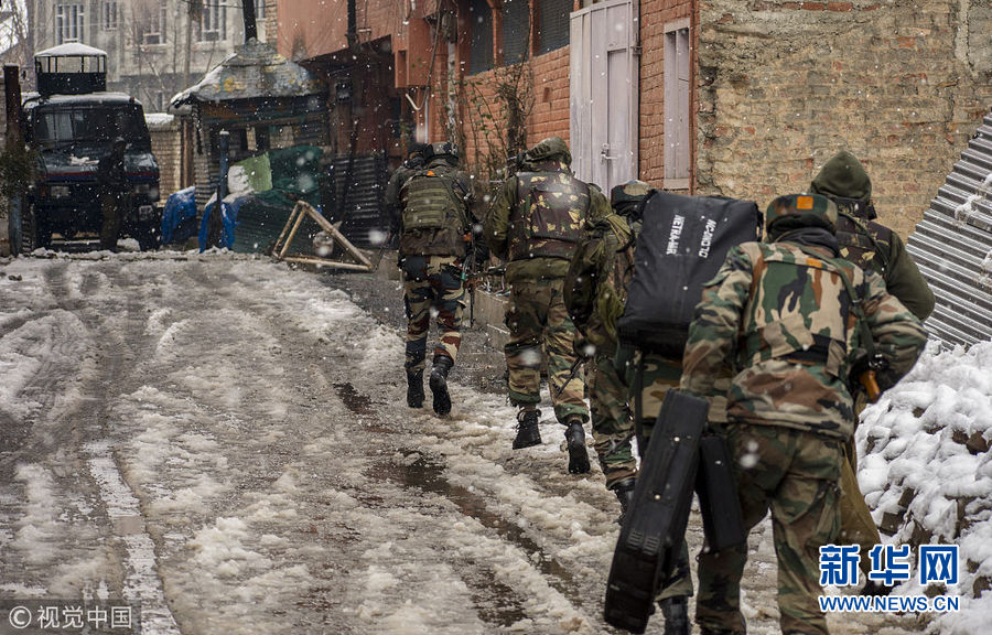 2月12日,印控克什米爾斯利那加,印度政府軍與疑似激進(jìn)分子展開槍戰(zhàn)。兩名持槍歹徒在他們的營(yíng)地附近開火致一名印度準(zhǔn)軍事部隊(duì)士兵死亡。(圖片來(lái)源:視覺中國(guó))