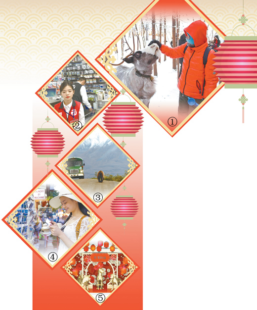 圖①:中國游客在俄羅斯摩爾曼斯克與馴鹿在一起。