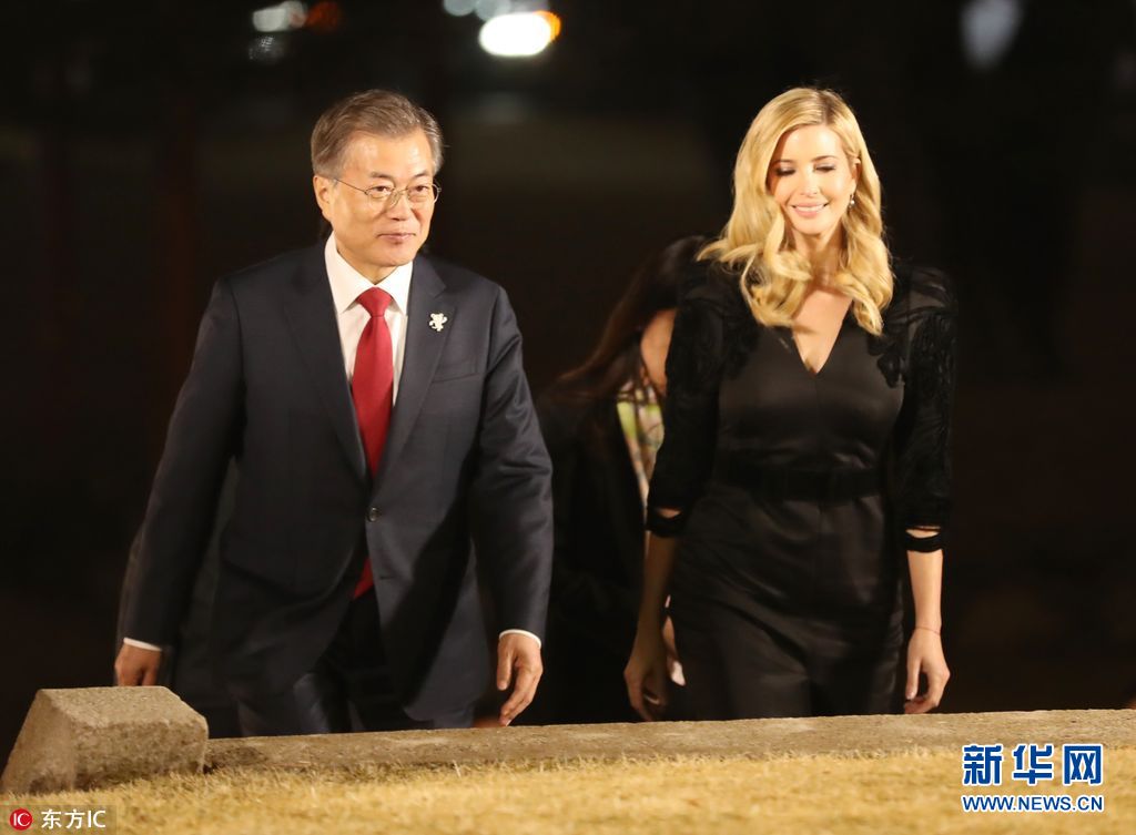 當(dāng)?shù)貢r(shí)間2018年2月23日,韓國(guó)首爾,韓國(guó)總統(tǒng)文在寅夫婦在青瓦臺(tái)設(shè)晚宴,歡迎伊萬(wàn)卡來(lái)訪(fǎng)。美國(guó)總統(tǒng)特朗普之女、總統(tǒng)助理伊萬(wàn)卡率領(lǐng)的美國(guó)代表團(tuán)23日抵韓進(jìn)行訪(fǎng)問(wèn),并將出席平昌冬奧會(huì)閉幕式。(圖片來(lái)源:東方IC)