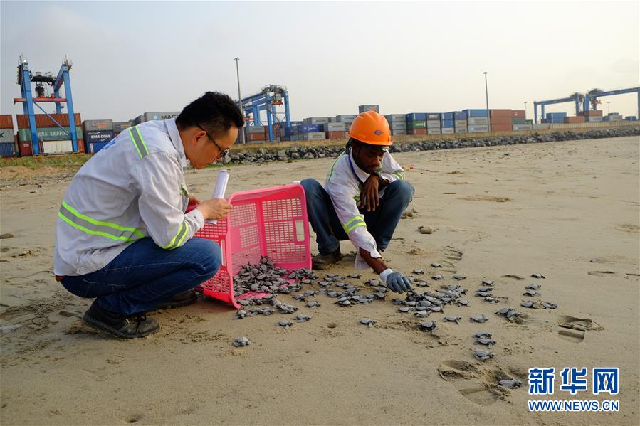 每年10月至次年3月是加納海域海龜?shù)漠a(chǎn)卵與孵化期,成年海龜會陸續(xù)來到海灘產(chǎn)卵,繁衍下一代。為了保障項目工程區(qū)域海龜正常產(chǎn)卵孵化,承建單位中國港灣工程有限責(zé)任公司(中國港灣)2017年11月建立了海龜孵化基地,將野生海龜在沿岸產(chǎn)的卵收集起來進(jìn)行集中孵化,在小海龜孵化后放回大海。