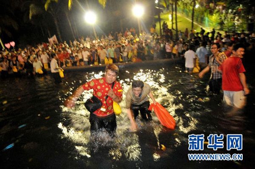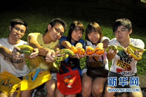 元宵之夜,華裔單身男女紛紛走出家門(mén),涌向公園的河邊或湖邊,男的拋香蕉,女的拋柑橘,還在水果上寫(xiě)上聯(lián)絡(luò)號(hào)碼,以期覓得一段好姻緣。