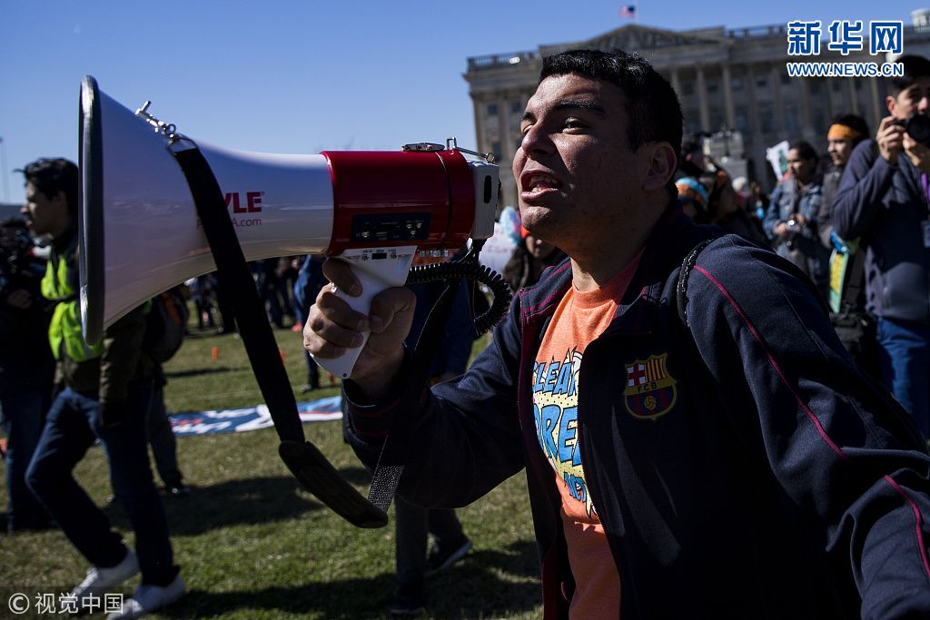 當?shù)貢r間2018年3月5日,美國華盛頓,移民活動家在國會山舉行集會,抗議特朗普終結(jié)“夢想法案”計劃。(圖片來源:視覺中國)