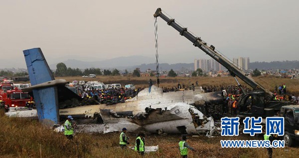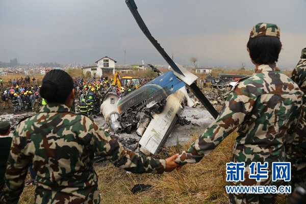這是3月12日在尼泊爾首都加德滿都拍攝的出事客機(jī)。新華社發(fā)(蘇尼爾·夏爾馬攝)