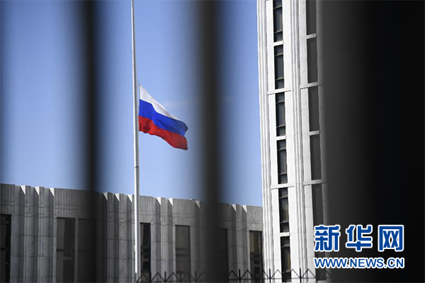 這是3月26日在美國首都華盛頓拍攝的俄羅斯駐美國大使館內(nèi)的俄羅斯國旗。新華社記者楊承霖攝