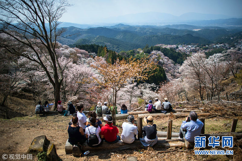 4月3日,日本奈良吉野,當(dāng)?shù)貦鸦ㄊ⒎牛姸嘤慰颓皝碛^賞。(圖片來源:視覺中國(guó))