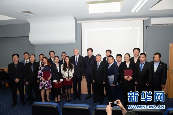 4月11日,首批通過克羅地亞導(dǎo)游職業(yè)資格考試的中國(guó)導(dǎo)游與歐洲地區(qū)華人旅游業(yè)者代表在薩格勒布合影。新華社記者高磊 攝?