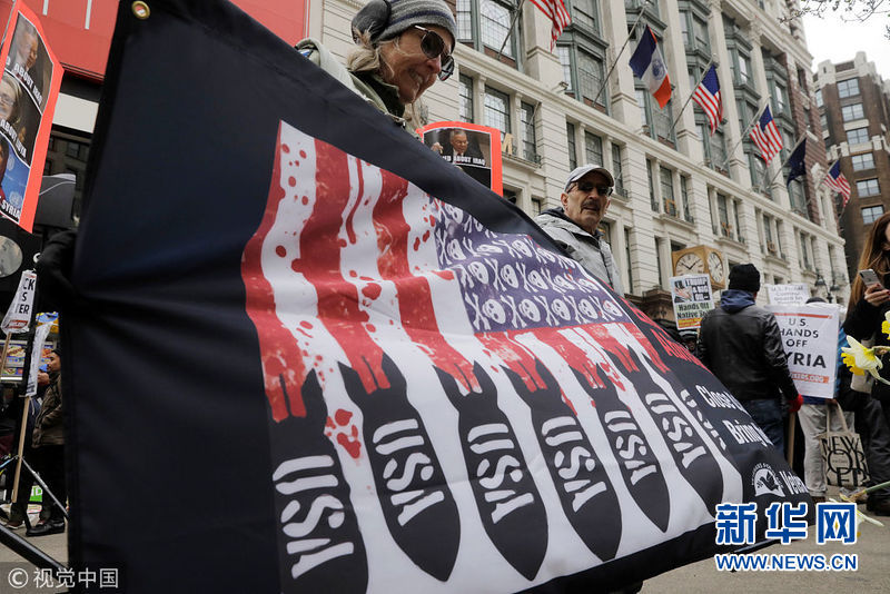 美國民眾舉行反戰(zhàn)游行 抗議美英法聯(lián)軍襲擊敘利亞