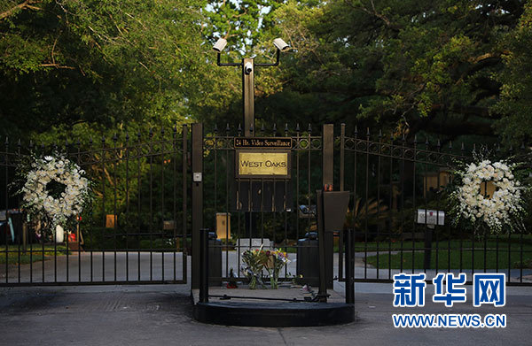 4月18日,鮮花擺放在美國(guó)前總統(tǒng)老布什和小布什位于美國(guó)休斯敦的住所大門前。新華社發(fā)(李怡今攝)