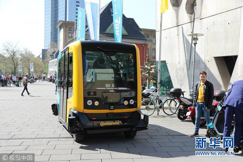 4月17日,德國(guó)法蘭克福,法蘭克福應(yīng)用科學(xué)大學(xué)測(cè)試自動(dòng)駕駛擺渡巴士。(圖片來(lái)源:視覺(jué)中國(guó))