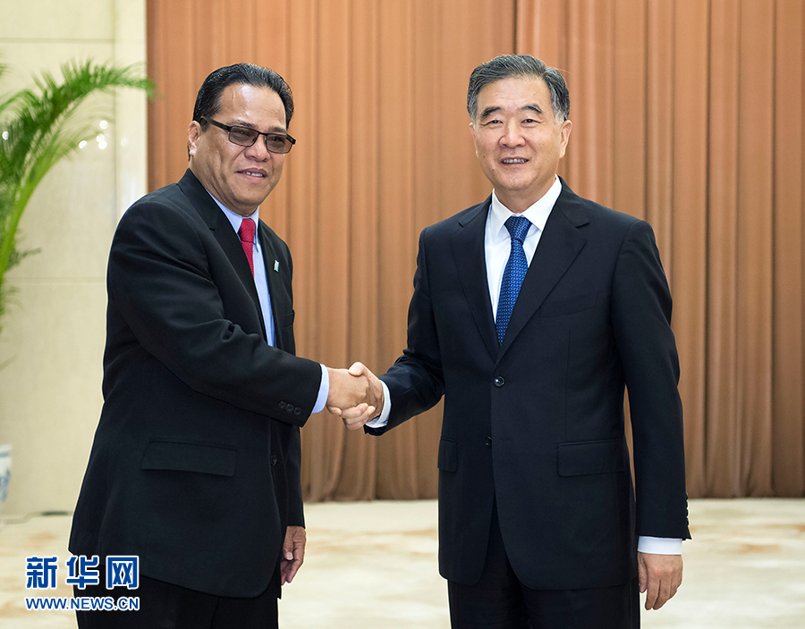 4月24日,全國政協(xié)主席汪洋在北京會(huì)見密克羅尼西亞聯(lián)邦國會(huì)議長西米納。 新華社記者李濤攝
