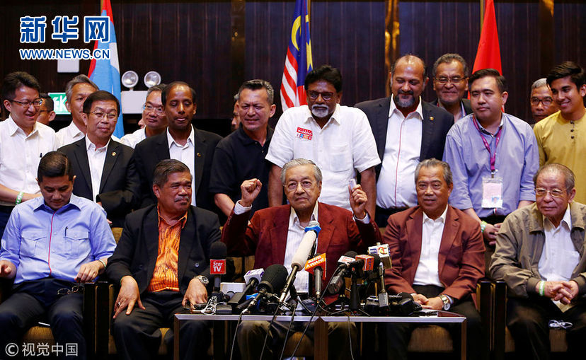 當(dāng)?shù)貢r(shí)間2018年5月9日,馬來(lái)西亞吉隆坡,馬哈蒂爾代表希望聯(lián)盟召開(kāi)新聞發(fā)布會(huì)。9日,馬來(lái)西亞國(guó)會(huì)大選結(jié)束。10日凌晨官方點(diǎn)票結(jié)果顯示,前總理馬哈蒂爾(Mahathir)帶領(lǐng)的希望聯(lián)盟取得112席簡(jiǎn)單多數(shù)國(guó)會(huì)議席,足以籌組政府及勝出大選,并終結(jié)執(zhí)政國(guó)民陣線長(zhǎng)達(dá)60年的管治。現(xiàn)總理納吉布領(lǐng)導(dǎo)的國(guó)民陣線僅獲得76席。(圖片來(lái)源:視覺(jué)中國(guó))