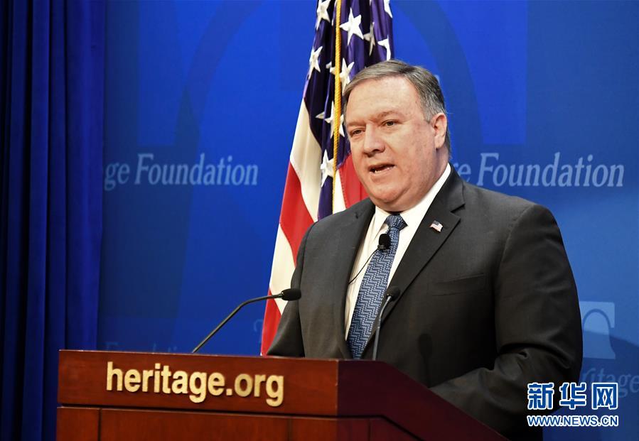 5月21日,美國國務(wù)卿蓬佩奧在華盛頓的美國智庫傳統(tǒng)基金會發(fā)表演講。美國國務(wù)卿蓬佩奧當(dāng)日表示,伊朗如果不改變當(dāng)前路線,將受到美國“最嚴(yán)厲的制裁”。 新華社記者楊承霖攝