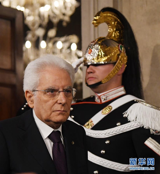 5月27日,在意大利首都羅馬,意總統(tǒng)馬塔雷拉出席新聞發(fā)布會。據(jù)當?shù)孛襟w報道,意大利新任總理孔特27日晚間與總統(tǒng)馬塔雷拉會面并提交擬定的內(nèi)閣成員名單時,馬塔雷拉否決了由意大利聯(lián)盟黨和五星運動力推的持疑歐立場的經(jīng)濟學家保羅·薩沃納出任財政部長。孔特向總統(tǒng)提出放棄組閣任務請求,請求得到總統(tǒng)確認。新華社發(fā)(阿爾貝托·林格里亞攝)