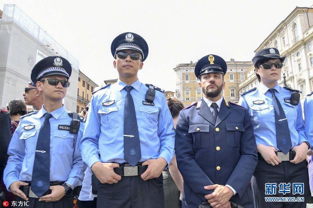 5月28日,意大利羅馬,中國警察現(xiàn)身羅馬街頭,參加第三次中意警察聯(lián)合巡邏。據(jù)報道,從5月28日到6月17日,10名中國警員將在羅馬等4個城市與意警方開展聯(lián)合巡邏,協(xié)助意方警員處理與在意中國公民和華僑華人安全相關問題。(圖片來源:東方IC)